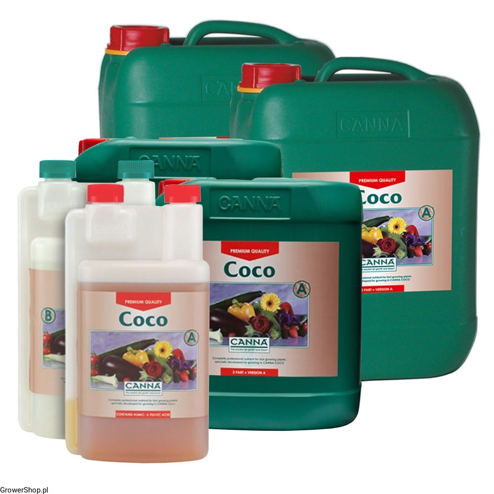 -Canna Coco to dwuskładnikowa, kompletna profesjonalna pożywka dla roślin uprawianych na substratach kokosowych podczas fazy wzrostu i kwitnienia.