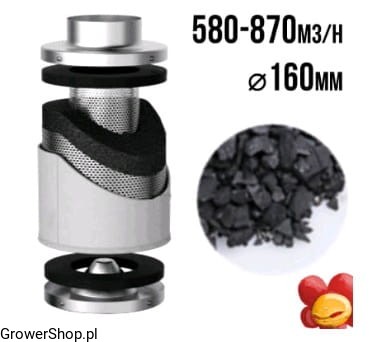 FILTR WĘGLOWY PRO-ECO VF fi 160 mm 580 - 870 m3/h h60cm 6,8kg