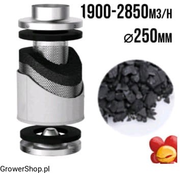 FILTR WĘGLOWY PRO-ECO VF fi 250 mm 1900 - 2850 m3/h h100cm 17kg