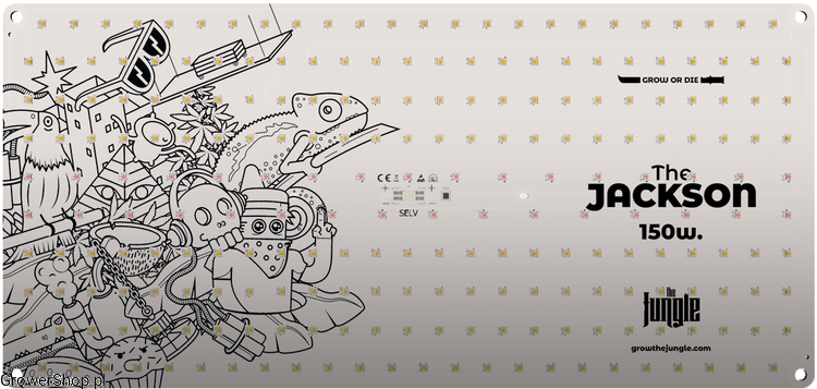 Jackson to światło LED o pełnym spektrum specjalnie opracowane do uprawy w pomieszczeniach. Ta płyta kwantowa o niskim zużyciu i wysokiej wydajności jest produkowana z nowego typu diodami LED firmy Samsung o długiej żywotności do 50 000 godzin.