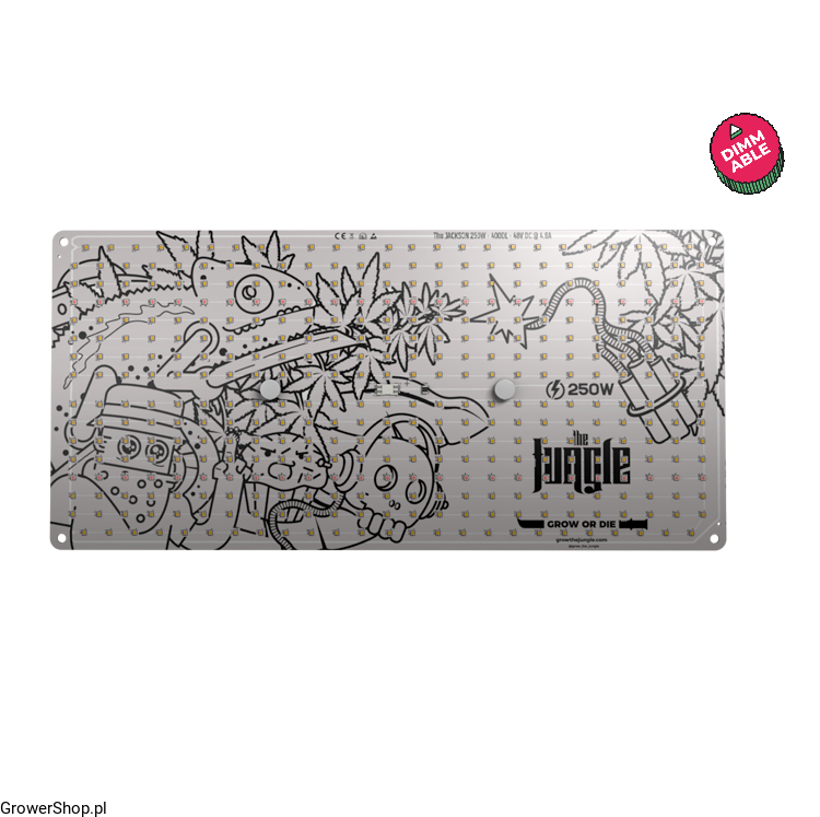 The Jackson 250W i cała seria Grow The Jungle szybko zyskały reputację wśród koneserów i hodowców. LED Jackson firmy GrowTheJungle to kwantowa lampa LED o pełnym spektrum, odpowiednia do okresu wegetatywnego i kwitnienia roślin w pomieszczeniach do uprawy lub w growboxach. Światła LED The Jackson są dostępne w dwóch różnych mocach: 150w i 250w, więc możesz wybrać, który z nich lepiej pasuje do twoich potrzeb. Jackson generuje bardzo mało ciepła i nie zużywa dużo energii elektrycznej, co pozwala roślinom rosnąć przez cały rok przy bardzo dobrym stosunku jakości do ceny.