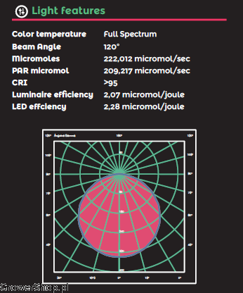 - Spektrum: Pełne spektrum (do wzrostu i kwitnienia)