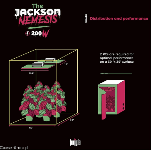 Panel LED The Jackson Nemesis 200w jest wynikiem ewolucji poprzedniego modelu The Jackson 250w od firmy Grow The Jungle. Panel o pełnym spektrum, przeznaczonym dla faz wzrostu i kwitnienia. Grow The Jungle jako jedni z pierwszych zastosowali najnowsze diody Samsung LM301h o bardzo wysokiej skuteczności fotosyntetycznej.