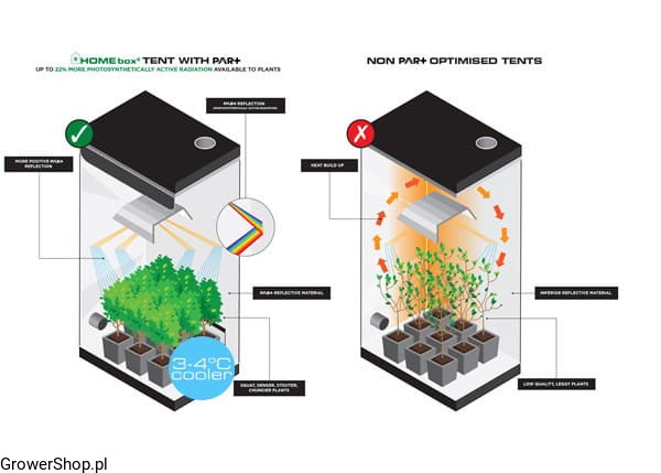 Co daje powłoka wewnętrzna PAR+ w porównaniu do innych growboxów: