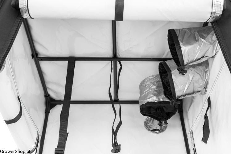 - odbija do 95% światła - namiot zasuwany na suwak (ułatwia składanie / rozkładanie) - dodatkowa podłoga MYLAR 600D - stelaż z rurek 16mm - ściągacze przy otworach - mocne stalowe łączniki i dodatkowy materiał przy łączeniach - wodoszczelny, nie przepuszcza światła - materiał nadający się do prania - posiada 2 okna wentylacyjne