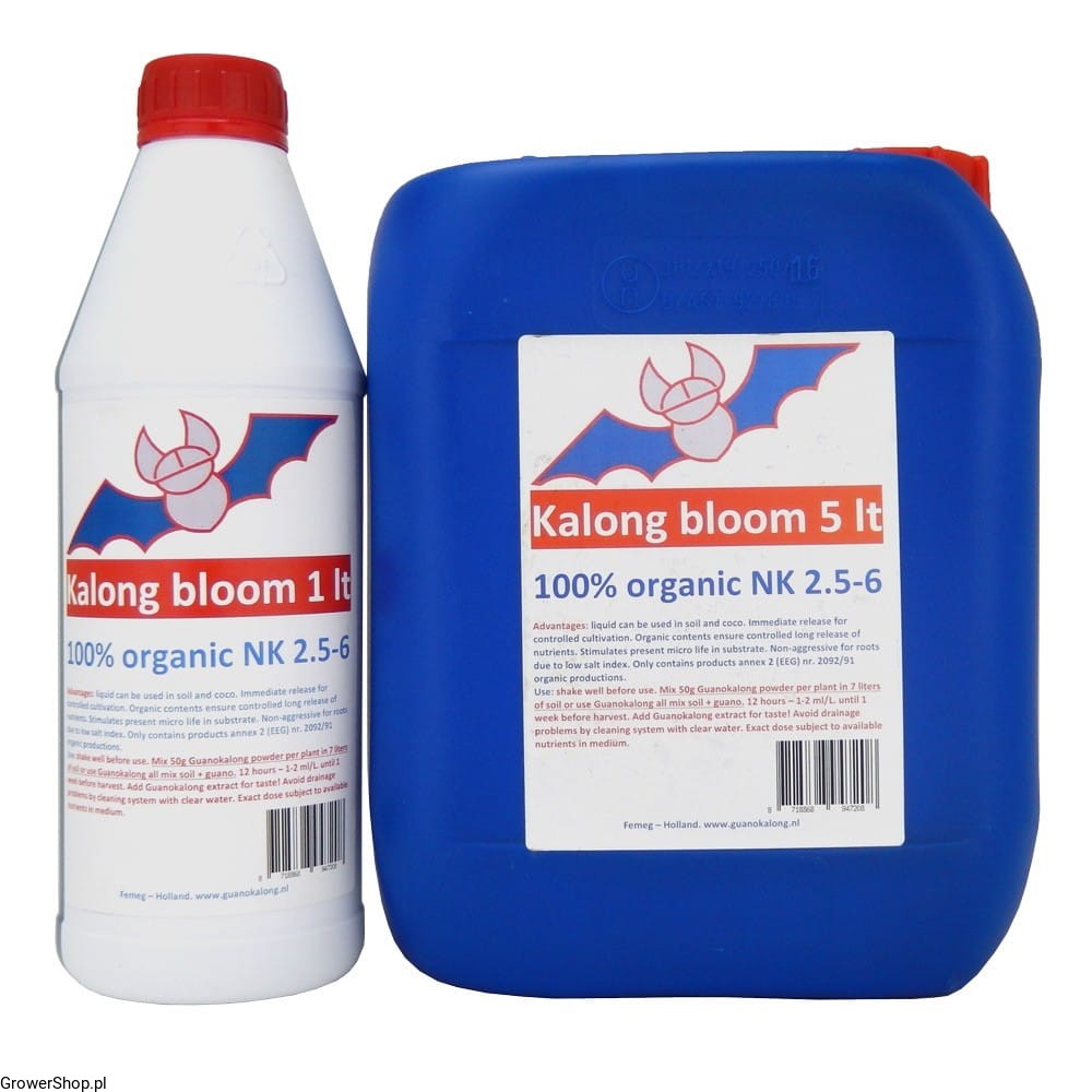 Stosowanie Kalong bloom: przed użyciem dobrze wstrząsnąć. Wymieszaj 50 g proszku Guanokalong z 7 l ziemi lub użyj gotowej mieszanki ziemnej Guanokalong. Przy 12h światła/dobę podawaj 1-2 ml/l aż do tygodnia przed zbiorem. Dodaj Guanokalong – ekstrakt poprawiający smak. Aby uniknąć problemów z odpływem płucz system czystą wodą. Dokładne dawki powinny być dostosowane do ilości składników odżywczych w podłożu. Przechowywać w temp. 5-25 C.