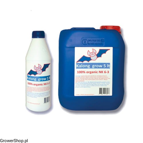 Kalong grow i Kalong bloom – razem z Guanokalong w proszku... kompletny zestaw nawozów organicznych Korzyści: płynu można używać do podłoży ziemnych i kokosowych. Wchłania się natychmiast i uwalnia przez długi czas. Stymuluje rozwój pożytecznych mikroorganizmów w ziemi. Łagodny dla korzeni dzięki niskiej zawartości soli. Zawiera tylko składniki organiczne zgodne z products annex 2 (EEG) nr. 2092/91.