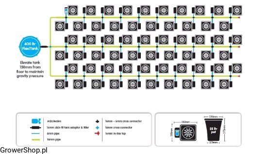 KOMPLETNY SYSTEM AUTOPOT (XL SYSTEM), 60 DONICZEK 25L + ZBIORNIK FLEXITANK 400L + AKCESORIA