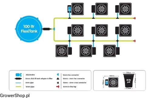 KOMPLETNY SYSTEM AUTOPOT (XL SYSTEM), 9 DONICZEK 25L + ZBIORNIK FLEXITANK 100L + AKCESORIA