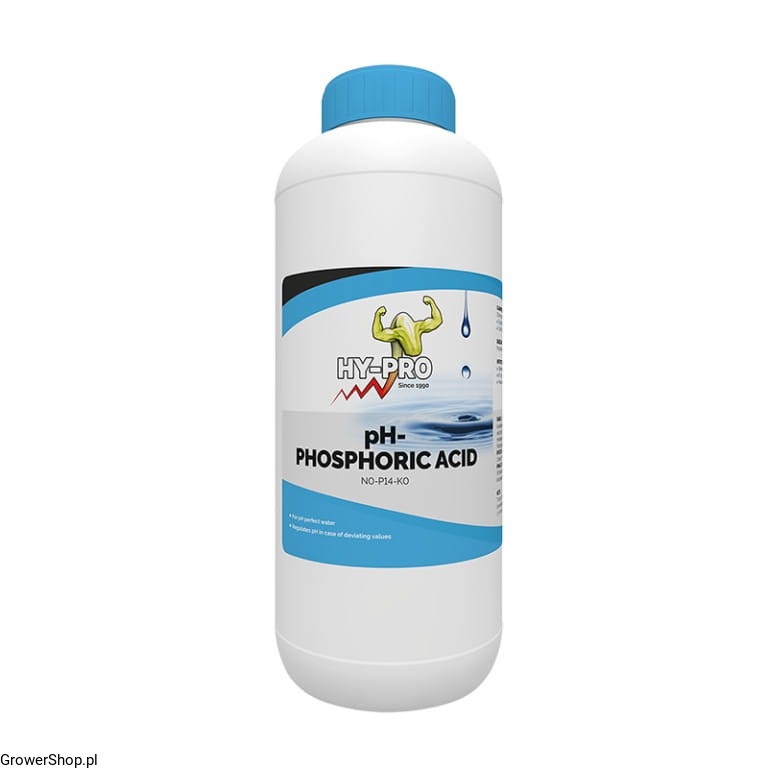 Hy-Pro Ph- (Bloom) to produkt, który zawiera kwas fosforowy Pozwala to na zwiększenie kwasowości w roztworze odżywczym, dzięki czemu rośliny kwitnące mogą prawidłowo wchłonąć wszystkie potrzebne im składniki odżywcze. Jeśli wartość pH wody do nawadniania jest zbyt wysoka, można ją skutecznie obniżyć za pomocą Hy-pro pH-.