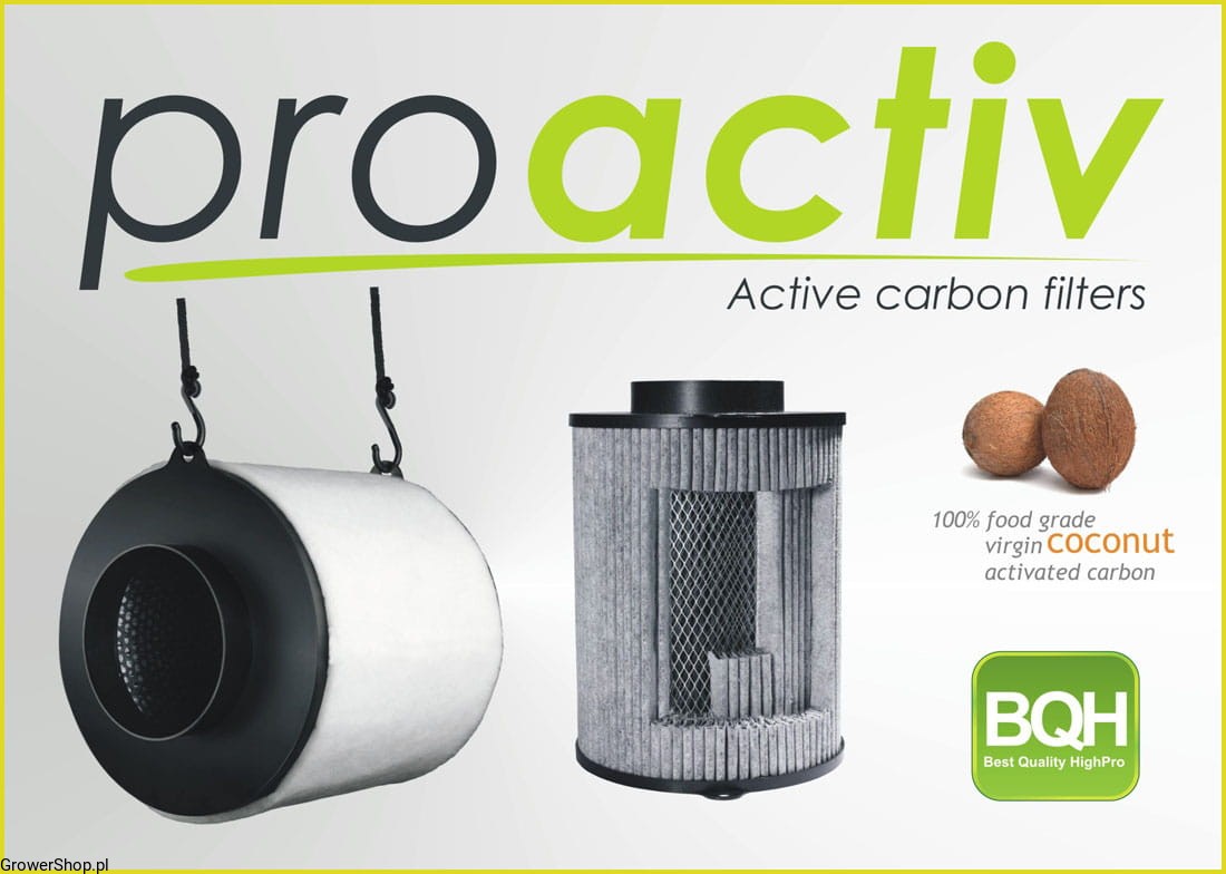Lekki filtr węglowy, antyzapachowy, do boxa - PROACTIV to najlepszy sposób na neutralizację zapachu w growboxie uprawowym i nie tylko. Dzięki innowacyjnej technologii harmonijkowej maty węglowej, zwiększona maksymalnie została powierzchnia filtrująca bez straty ciśnienia.