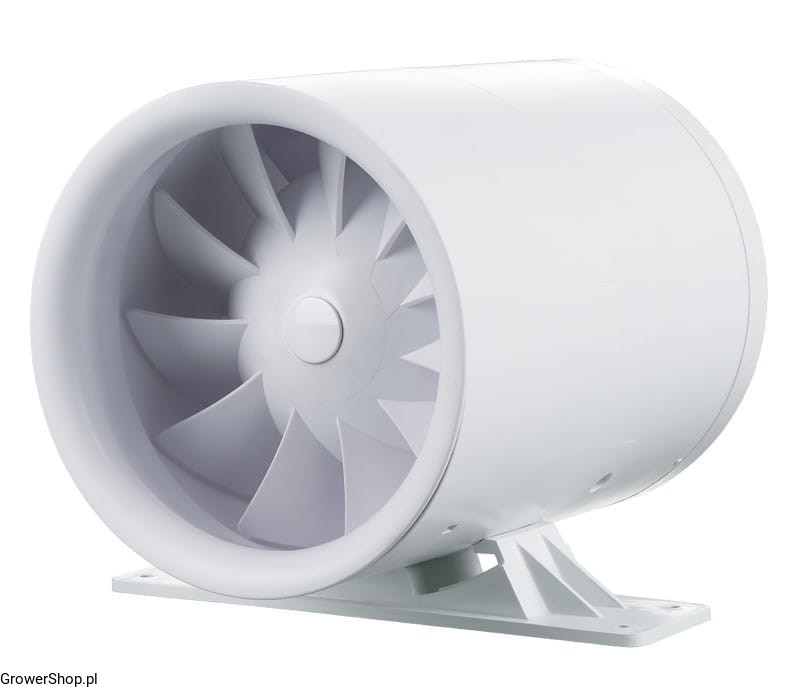 Wentylator jest mały i bardzo elastyczne w montażu. Idealny do montowania bezpośrednio na filtr węglowy lub w rękaw namiotu uprawowego. Obudowa i wirnik są wykonane z wysokiej jakości trwałego tworzywa sztucznego. Czop wydechowy jest wyposażony w specjalnie zaprojektowane prostowniki przepływu powietrza w celu zmniejszenia turbulencji powietrza, poziomu hałasu i zwiększenia ciśnienia powietrza. Konstrukcja wirnika wentylatora zwiększa efektywność i zapewnia cichą pracę wentylatora.