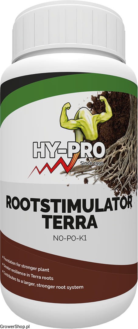 Hy-pro rootstimulator TERRA to specjalnie opracowana formuła, która ma na celu zoptymalizowanie Twoich roślin i upraw rosnących na podłożach glebowych.