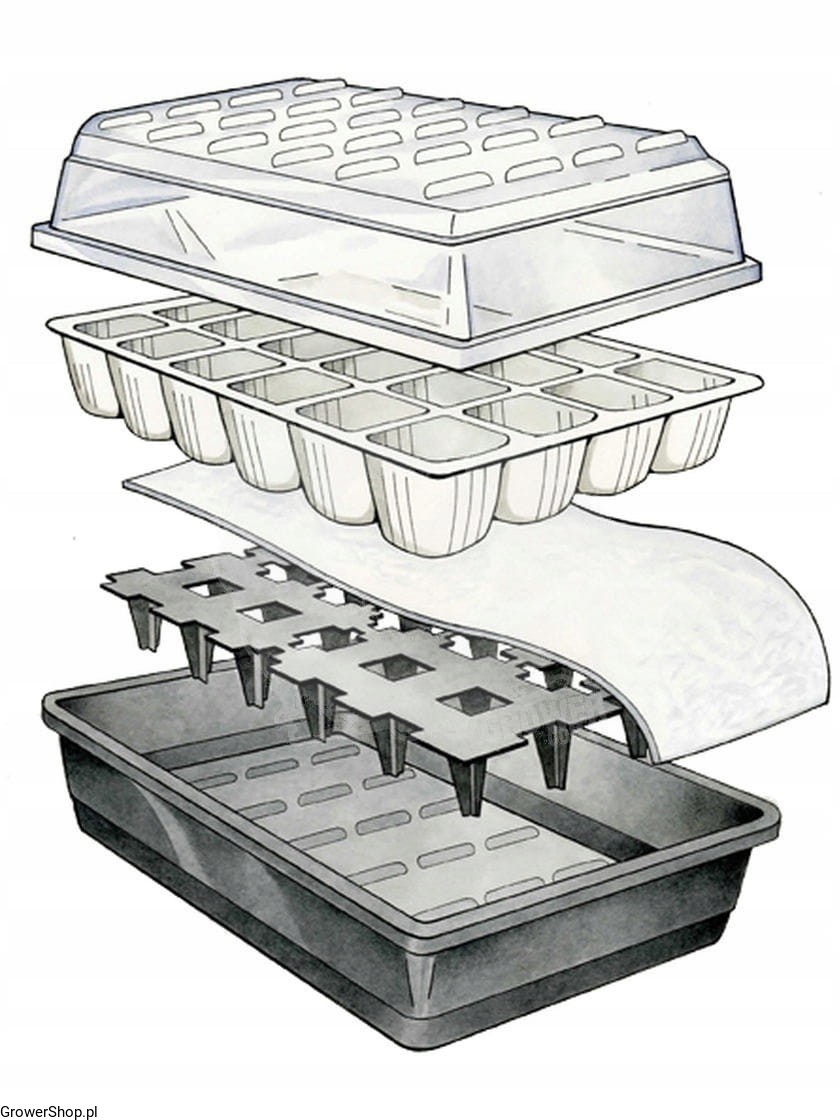 Utrzymywanie optymalnych warunków uprawy jest niezbędne do odpowiedniego kiełkowania nasion. Ten model propagatora z samonawadnianiem został wyposażony w wewnętrzny zbiornik na wodę. Zestaw ten wyposażony jest w 24 doniczki, umieszczonych na plastikowej platformie która została wyłożona matą kapilarną, której jedna część zanurzona jest w zbiorniku. Z wyjątkiem maty kapilarnej, to urządzenie jest wykonane z plastiku pochodzącego z recyklingu.