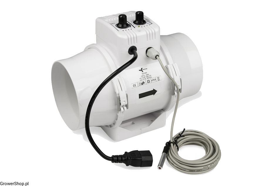 Wentylator zaopatrzony w budowany sterownik utrzymujący zadaną temperaturę w boxie: